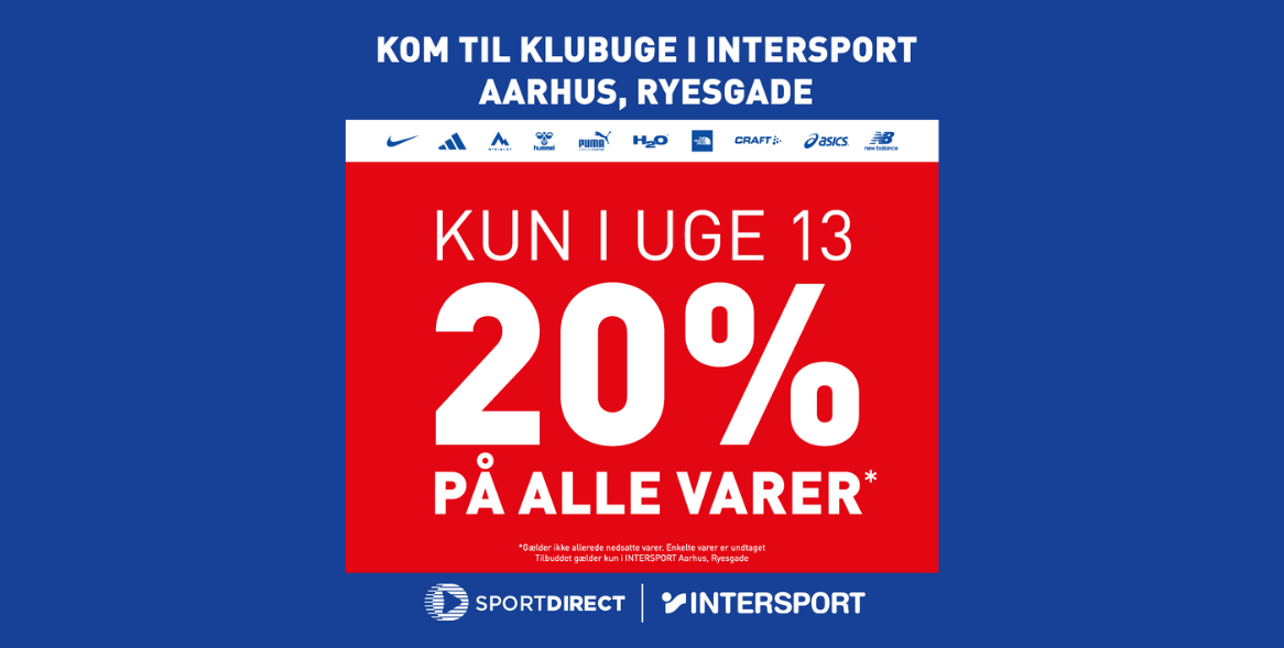Forud for forårssæsonen tilbyder Intersport i Ryesgade AGFs medlemmer 20% rabat på alle varer. Men KUN I UGE 13