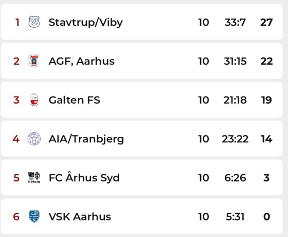 AGF-holdet spiller offensiv, seværdig fodbold med høj prioritet på at score mål, og det har givet bonus. Kun Stavtrup/Viby har scoret flere mål, 35 mod AGF’s 33 i de 10 kampe.