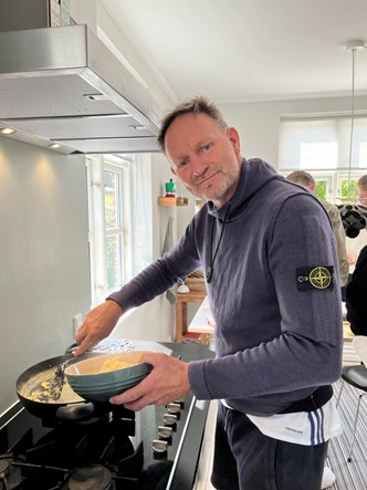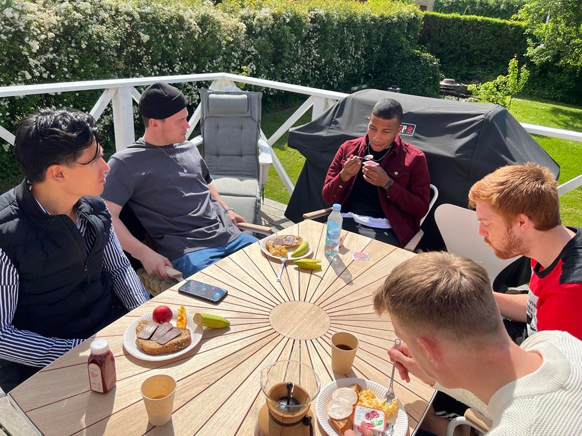 Derfor ligger holdet på en sidsteplads i en tæt gruppe, hvor blandt andet Fuglebakken KFUM og FC Horsens stadig er inden for rækkevidde. Lørdag ventede netop FC Horsens til en vaskeægte bundgyser, og holdets målmandstræner - og huskok - Steen Mølbye Jensen havde inviteret truppen til lækker morgenmad på hans solbeskinnede terrasse forud for det vigtige opgør.