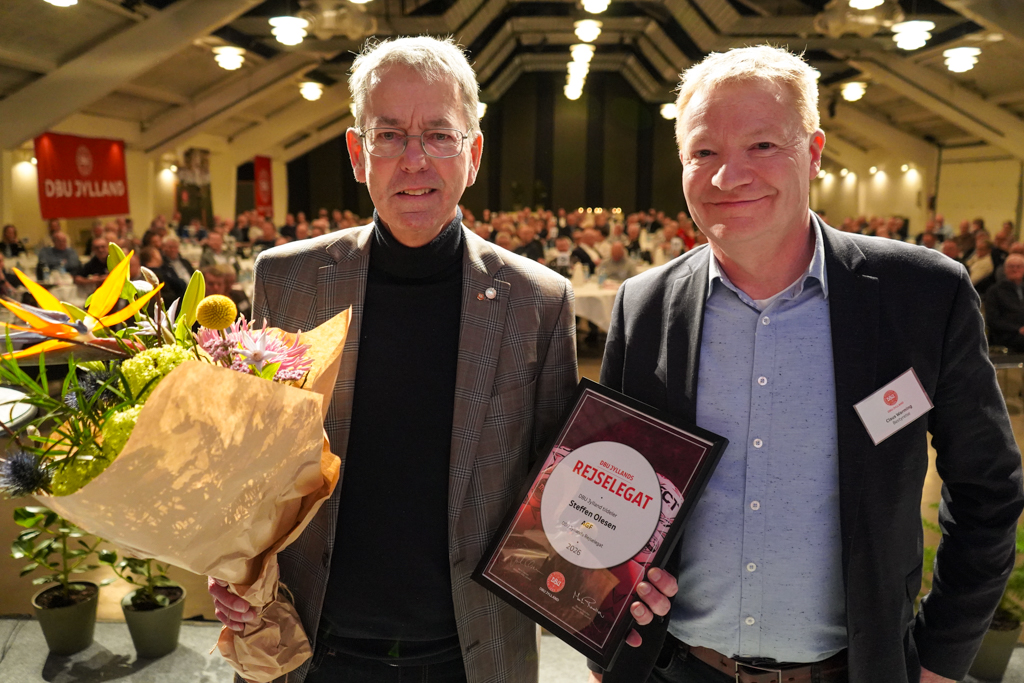 I forbindelse med DBU Jyllands delegeretmøde i Herning Kongrescenter blev fodboldformand Steffen Olesen lørdag hædret med DBU Jyllands Rejselegat 2026 foran små 250 fodboldledere.