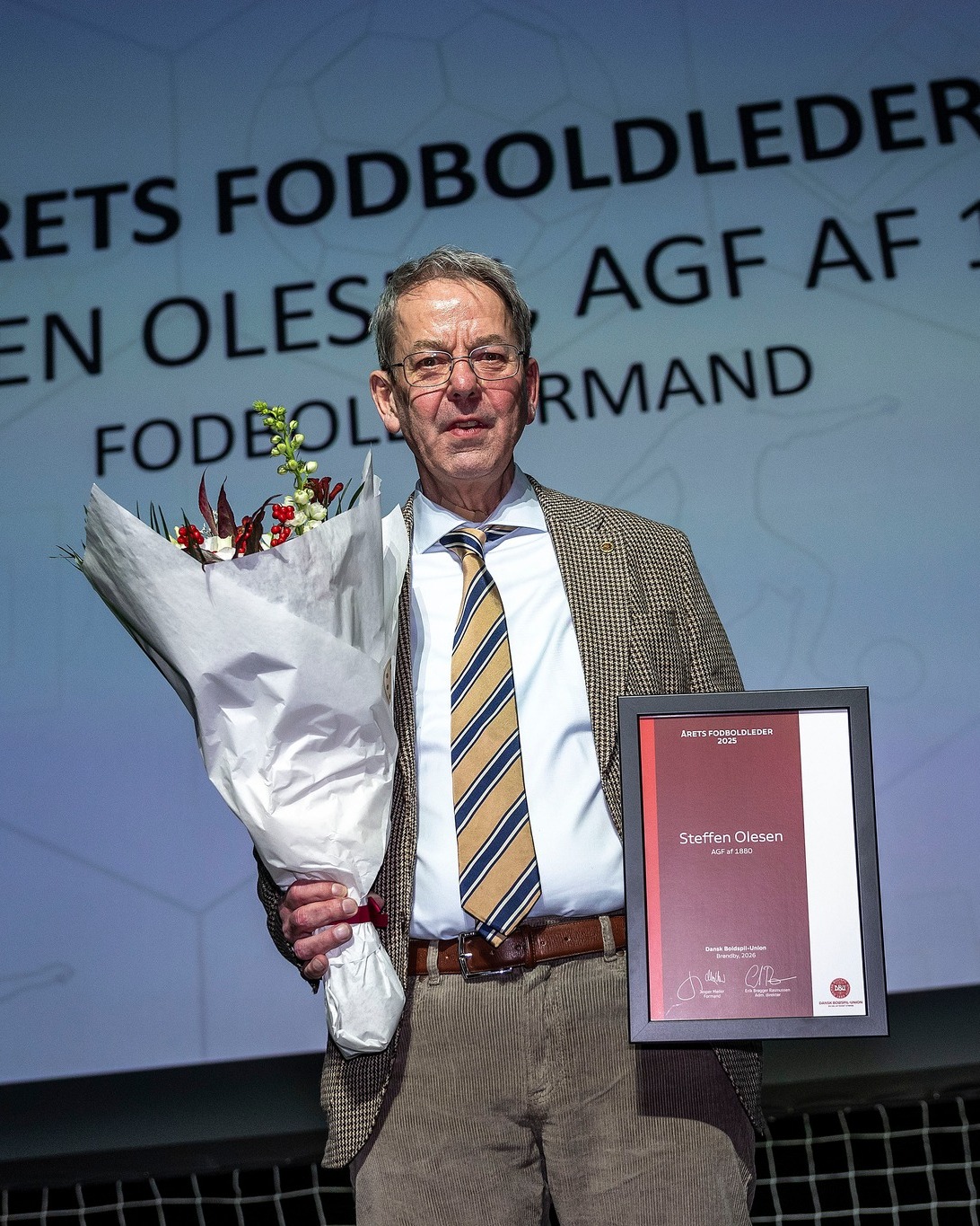 I starten af året blev Steffen Olesen hædret med DBU Jyllands Rejselegat 2026, og i forbindelse med DBU's fodboldkongres i Aalborg 7. marts var der igen bud på scenen efter formanden for AGF af 1880's fodboldafdeling. Denne gang for at blive hyldet som Årets Fodboldleder i Dansk Fodbold. Den fornemme hædersbevisning modtog Steffen Olesen for sit mangeårige virke som frivillig leder i AGF. Et virke, der tog sin begyndelse for lige knap 50 år siden og siden har budt på mange kasketter. Ja, som Steffen selv konstaterer: "Jeg kan med sikkerhed sige, at jeg har lavet alle opgaver, man nogensinde kan finde på Fredensvang. Jeg har faktisk også slået bane 1 på traktoren i tidernes morgen. Det eneste, jeg aldrig har prøvet er, at kridte en fodboldbane."