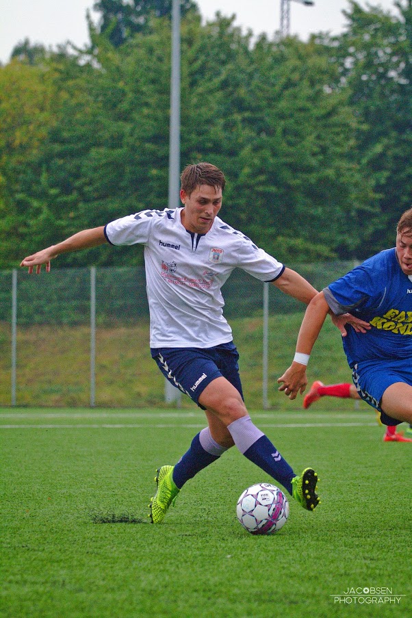Foto: Jonas Roulund med bolden på Fredensvangs bane 6.